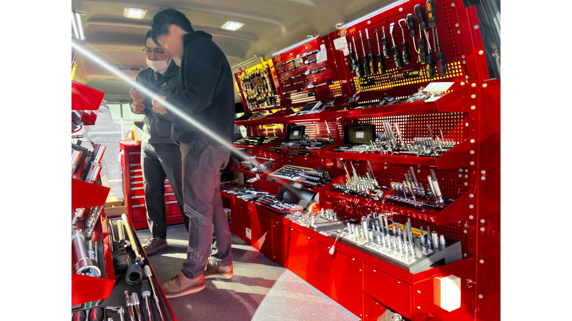 実物を見て・触れていただきながら、じっくり商品をご紹介できる機会になりました。普段なかなか店頭や展示では見られない工具も持ち込めたため、
